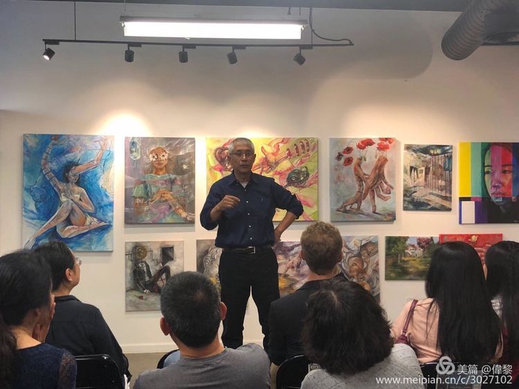 GW工作室艺术指导老师王伟黎接着向大家介绍了有关美术作品集在报考艺术专业的必要性和报考著名大学时的重要性,通过艺术作品集我们可以看到学生的创造性思维和想象能力,作品集在体现学生的绘画基础功底时也同时展示了其美学品味及其艺术语言的运用。并向大家介绍了参展学生Kelsey Chen作品表现的反思人类,Audrey Kang 作品表现的体验人生,Angelina 作品表现的感悟人生,以及Lilly Cao 的作品表现的抽象人生与物体凝炼。