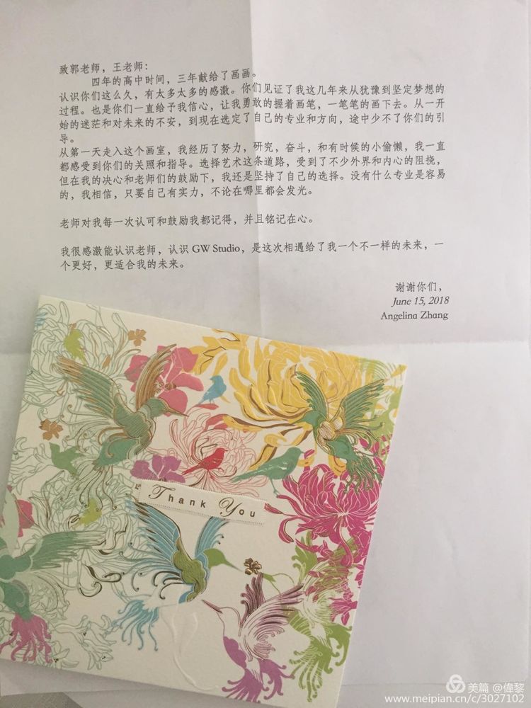 郭老师接着又向大家介绍了今年是我们工作室建立十周年,和今年在我们工作室准备美术作品和被大学录取的共8位高中毕业生的情况。
